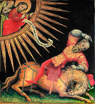 Ces trois œuvres d’art représentent Paul tombant de cheval lors de sa rencontre avec le Christ. Ce détail ne se trouve pas dans les textes bibliques.