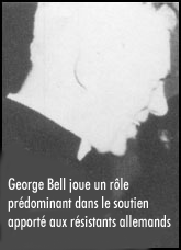 En 1942 en Suède, Dietrich Bonhoeffer rencontre à nouveau l’évêque de Chichester, George Bell (1883-1949) qui joue un rôle prédominant dans le soutien apporté aux résistants allemands. George Bell fait partie de ceux qui réalisent qu’à l’intérieur même de l’Allemagne s’est constituée une résistance qu’il faut soutenir. Comme certains, il partage l’avis que l’après-Hitler peut être envisagé à partir de ces noyaux de résistants. Pour lui, » allemand » n’est pas synonyme de » nazi « . Il connaît désormais trop d’exceptions, Bonhoeffer n’en étant que l’une des plus manifestes. George Bell n’hésite pas à intervenir dans ce sens et à de multiples reprises auprès de son gouvernement. Il le rend attentif aux dangers que court la résistance allemande. Mais le ministère des affaires étrangères britannique poursuit une politique différente : il n’est pas question d’envisager l’après-guerre même avec les résistants actuels au pouvoir nazi sans une capitulation préalable et inconditionnelle de tout l’Etat allemand.